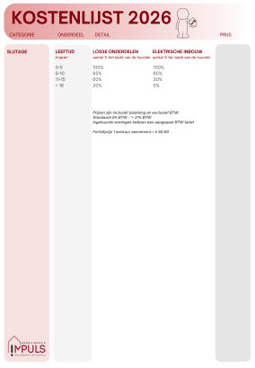 Hieronder kan je de kostenlijst voor 2026 reeds raadplegen.