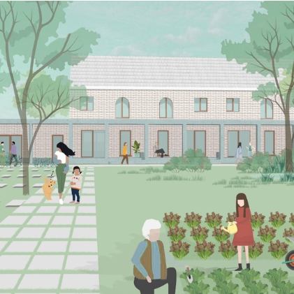 Op deze site werden 26 oude, kleine woningen gesloopt. Deze worden vervangen door een 'woonerf' van 19 woningen en 2 appartementen. Het woonerf krijgt een centrale binnentuin en een buurthuis. Het worden woningen van 3 en 4 slaapkamers, de appartementen krijgen 2 en 3 slaapkamers.