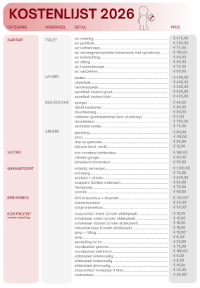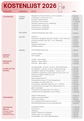 Aan de hand van de kostenlijst worden herstellingen berekend. Dit zowel tijdens als na een verhuring.